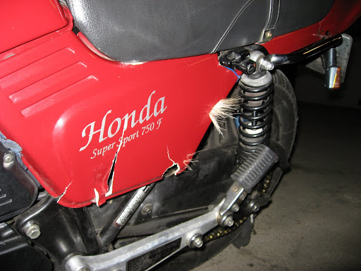 Kommer kørende på en skovvej omkring midnat, ser et "vildt passage" skilt, sætter farten ned pga. en 'bad feeling'. Få sekunder senere når jeg lige at registrere at et stort dyr med gevir og hele skidtet passerer få meter foran mig. Lige i røven af den store kommer et kid, som også når forbi, måske centimetere foran mig... sidste kid når IKKE over, men smadrer i fuld firspring ind i min venstre side og rammer meget kraftigt fra mit ben og bagud. Bliver sendt i svingninger og kommer lidt ud i rabatten, men får bremset ned og kommer i hold. Efter et self-tjek og et tech-tjek ruller jeg tilbage til dyret der er dødt. Et par lokale scorer sig noget roadkill, enda kørt 'over' på skånsom vis. Og jeg triller hjemad, lidt rystet og med replay for nethinden af hændelserne foran mit høje lys. Samt et replay af livet der kort nåede at passere revy.