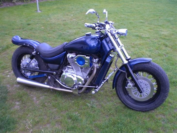 div ting bla spejle,fremflytter sæt hyper-charger, plus en masse andet.sidder en tank fra en harley på den og der kommer speedometer fra en vl 1500 som skal sidder ned over tanken i chrom.