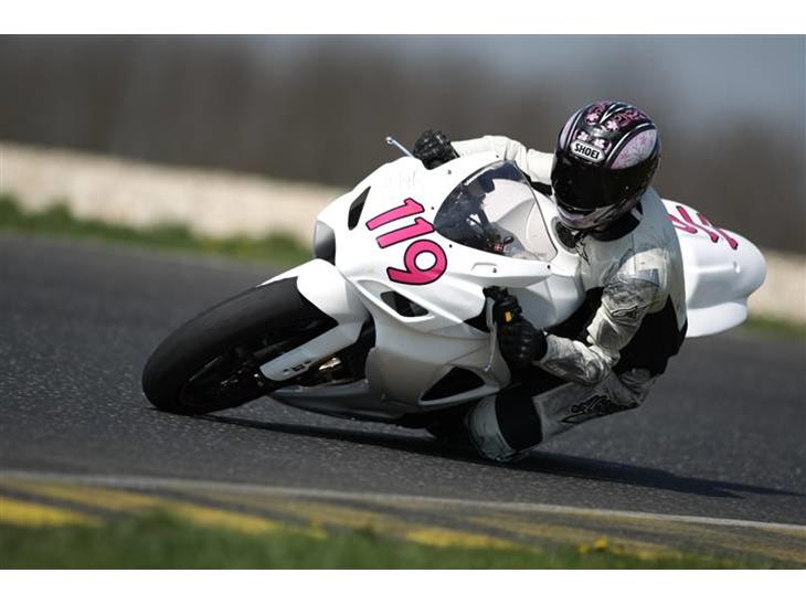 Baneracer. Efter 6 timer på testbænken for at køre den til tog den mig med til Pannonia i påsken med jura-racing. Det var fandme en fed bane når man først får den lært. Der var tidstagning dag 1, men havde stadig ikke lært den ordentligt at kende. Så min kval tid var ikke den bedste. Så jeg kørte med i "taber-løbet" dag.2 også kaldet den blandede klasse for dem der ikke kvalificerede sig til 750, 1000 og 600 løbene. Her blev jeg nr. 16 af 33 og kun 1000'ere var foran mig. Dag 3 kørte jeg et træningspas og så var lady-cuppen klar til start. Og jeg skulle vinde så den fik fuld fart frem..... indtil jeg lavede en vild highsider. Så nu skal den have lidt dele på i højre side, men ellers er den ok :) Glæder mig til den og jeg bliver klar til Brno :D Den skal males på samme måde som før forresten... med det hvide og de lyserøde tal.
