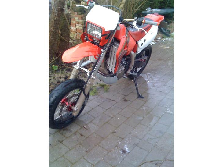 dæk årh det skal du ikke sige.. Den er altså super fed som motard... men ja han må sgu lige sørge for at finde et sæt cross fælge.. sådan en har ikke godt af at leve helt uden mudder