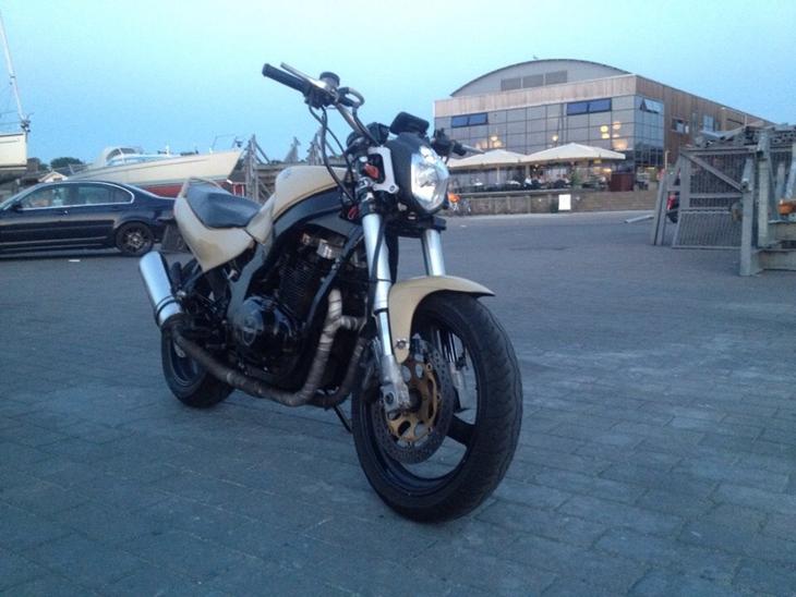 Helefronten er bygget om, Forgaffel er USD fra 93' gsx-r 750, (har beholdt det sorte fra dem bag lygten, for at holde den let broken dakar stil)