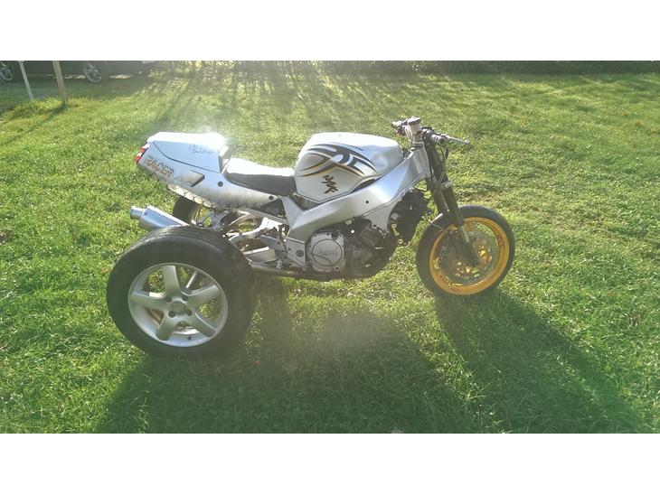 Motor er standard, men kåbe og lygter er taget af, og vægtbesparelse er vel også tuning :-) Så er der yosimura udstødning på